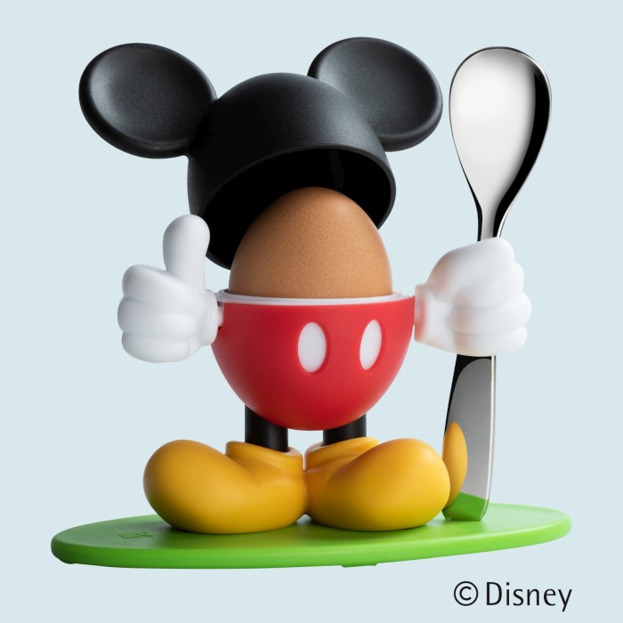 Подставка для яиц из лимитированного издания 90 Years Of Magic от WMF. Идеально подходит для ребенка возрастной категории от трех лет и любителей Mickey Mouse. В комплекте: стакан для яиц Mickey Mouse и стальная ложка. В шапочку можно складывать яичную скорлупу. Термостойкость до 130°С. Подставку следует мыть вручную, ложку можно мыть в посудомоечной машине.